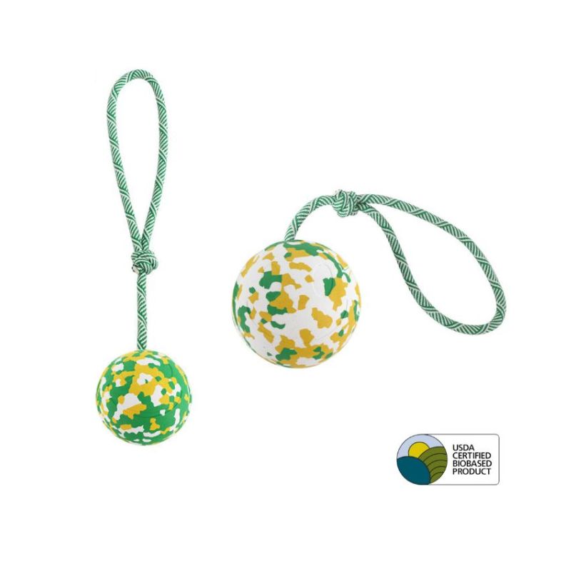 HiPawz offers customizable, eco-friendly camo dog chew toys made from natural rubber and bamboo fiber, available in various colors and shapes, with custom shapes requiring a new mold.