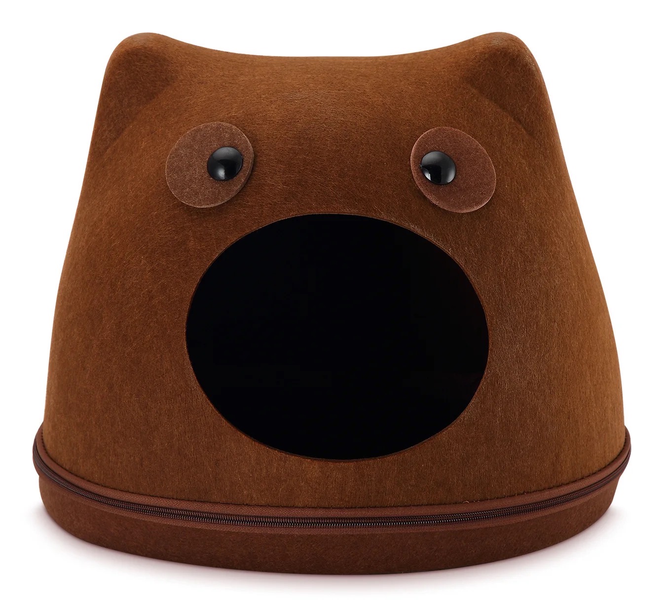 A cozy and durable cave cat bed with cute ear-shaped designs, resembling a little cat, that offers warmth, sound insulation, and water resistance for a comfortable and intimate resting space for kittens.