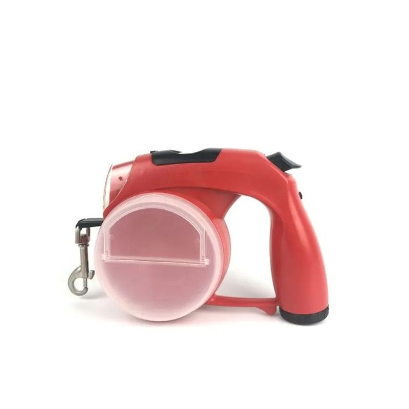 This product is made of environmentally friendly ABS material and is a fully automatic retractable pet leash. It consists of LED lighting, hooks, foldable water boxes, small timers, brake buttons, ergonomic handles, garbage bag storage, dog food storage boxes, and other components.