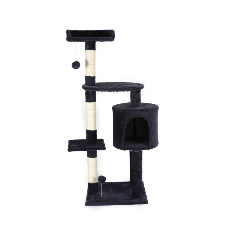 HiPawz’s Multifunctional Cat Tree HT-CT11 is fully covered in plush and features a sisal scratching post, a cat room for cats to rest on, and three platforms for resting or observing their territory. Additionally, it includes two small balls for your cat to play with, making it a thoughtful and cat-friendly option.