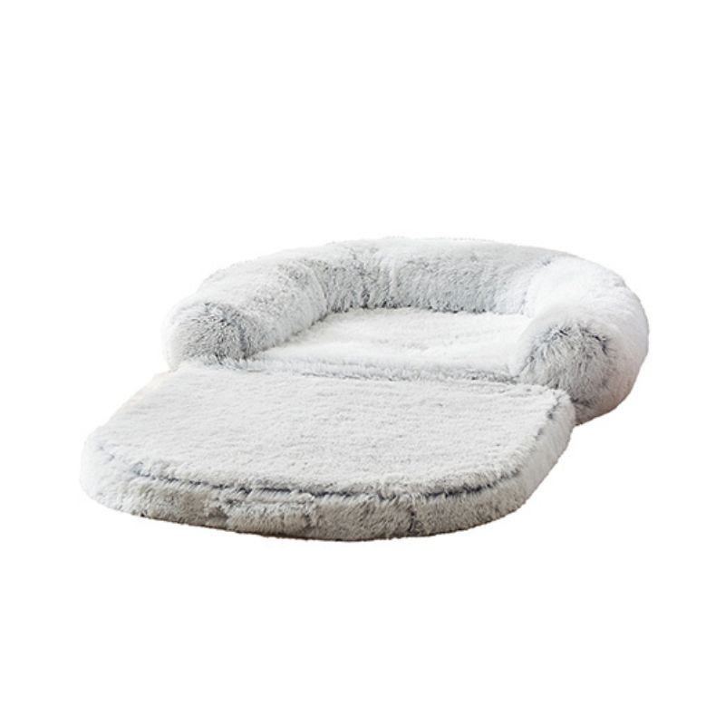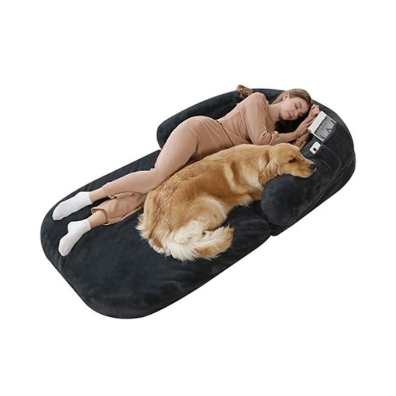 This dog bed is a large-sized bed with an outer diameter of 180*115*25 cm and a weight of 6.9 kg. We designed this size of bed not only for pets to use alone, but also for owners to lie on it and snuggle with their pets to increase the affection between owners and pets.
