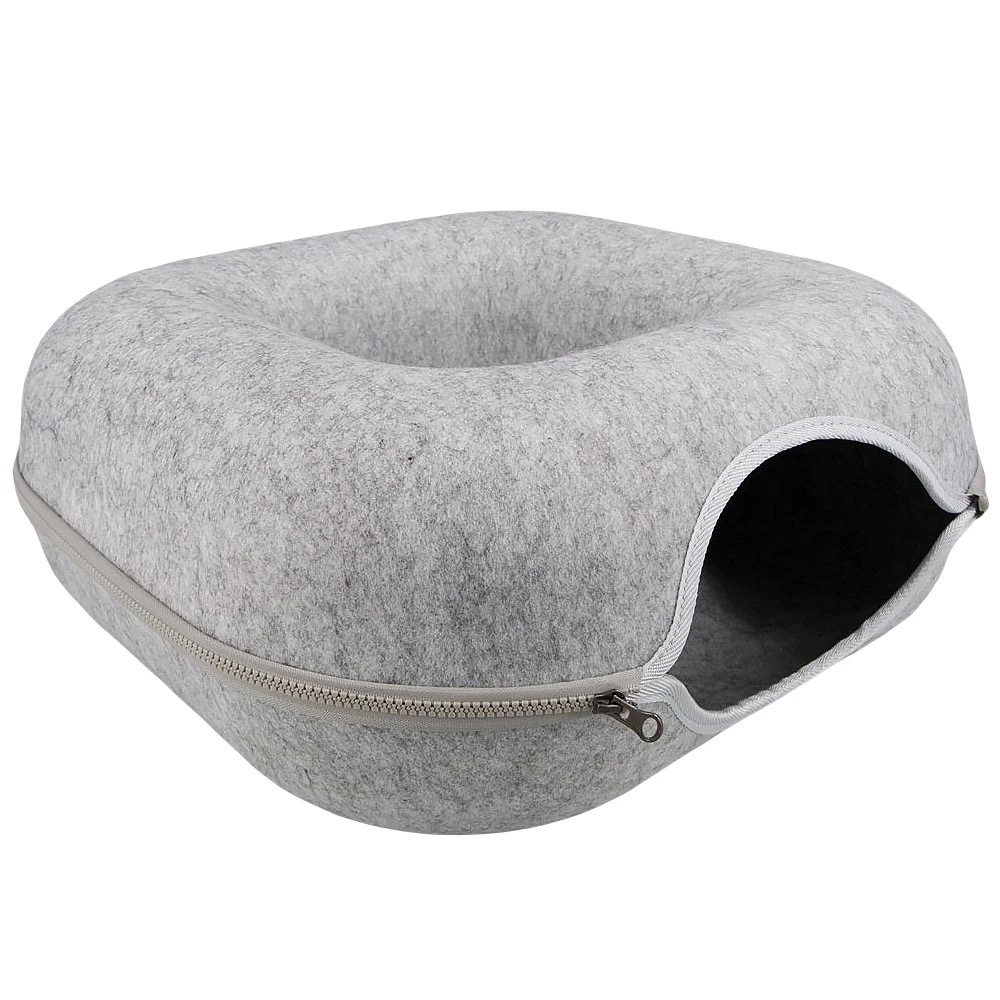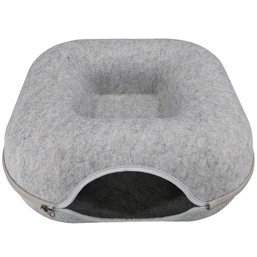 The square design cat tunnel cave features a square loop design, enhancing the fun for cats during playtime. It is made from felt fabric, which boasts excellent thermal insulation, heat retention, soundproofing, and waterproof properties. Additionally, it is highly resistant to wear and tear, so there’s no need to worry about damage from cat claws during play.